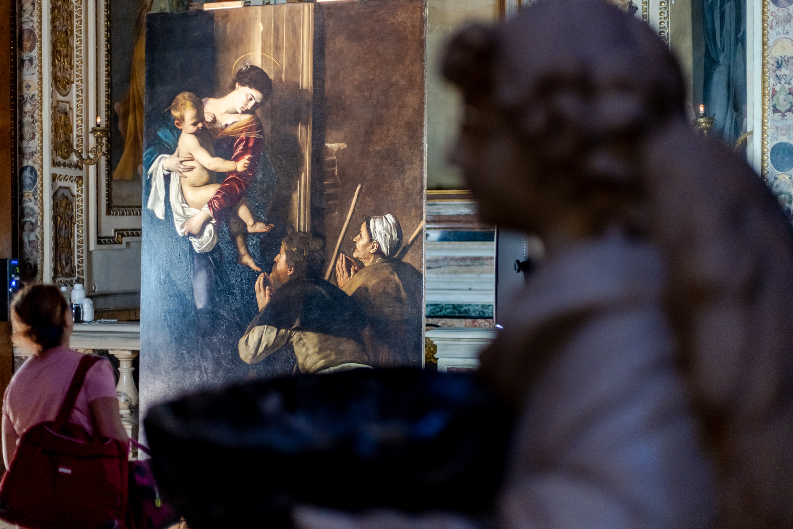 Questo è quello che faremo nei giorni 1, 2 e 3 di settembre all’interno della basilica di Sant’Agostino, sulla magnifica pala dedicata alla Madonna di Loreto, dipinta da Caravaggio tra il 1604 e il 1605 e ancora oggi posta sull’altare della cappella Cavalletti. L’opera restaurata dal nostro studio peril giubileo dell’anno 2000, richiede oggi una verifica della sua salute.