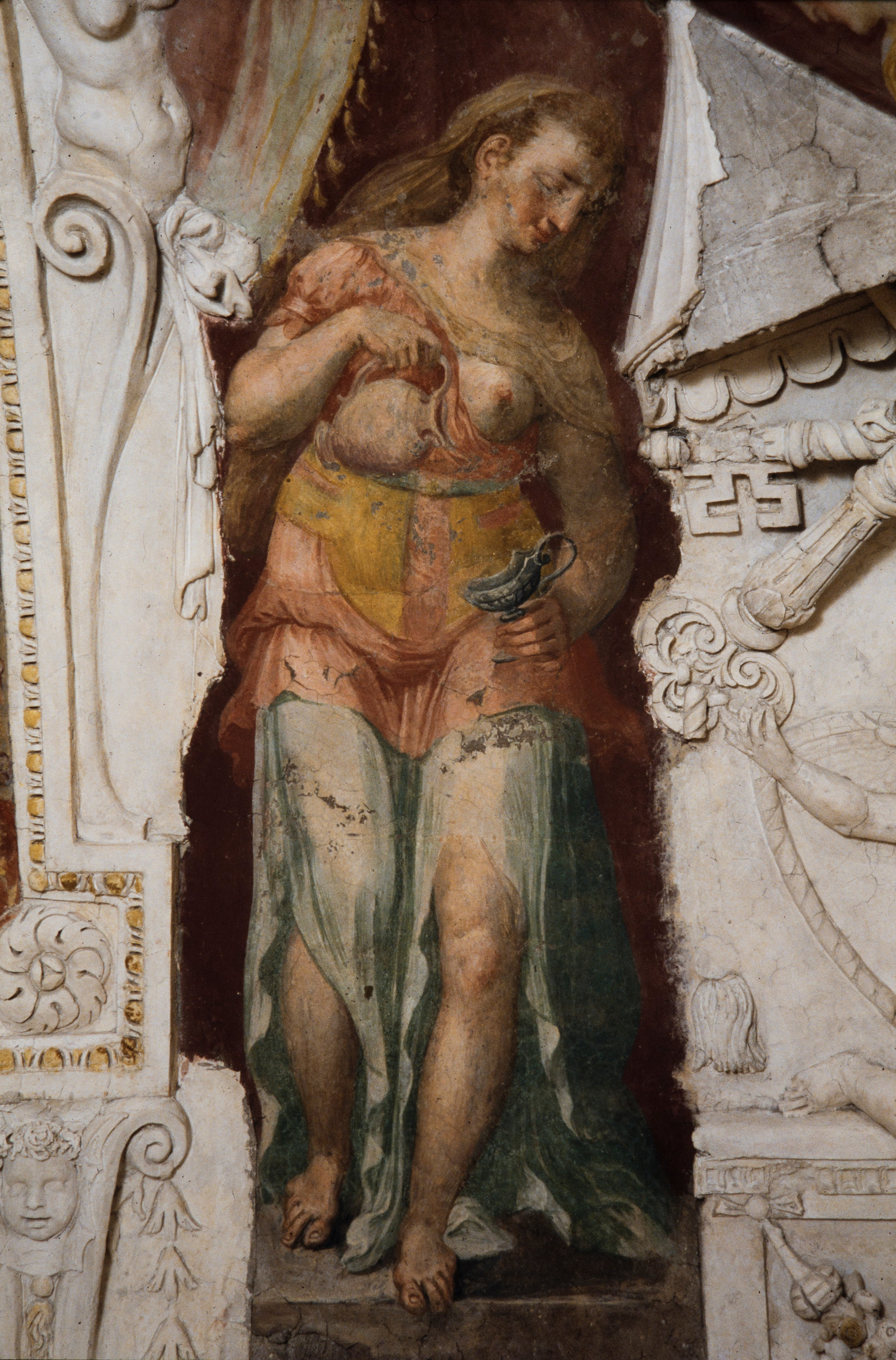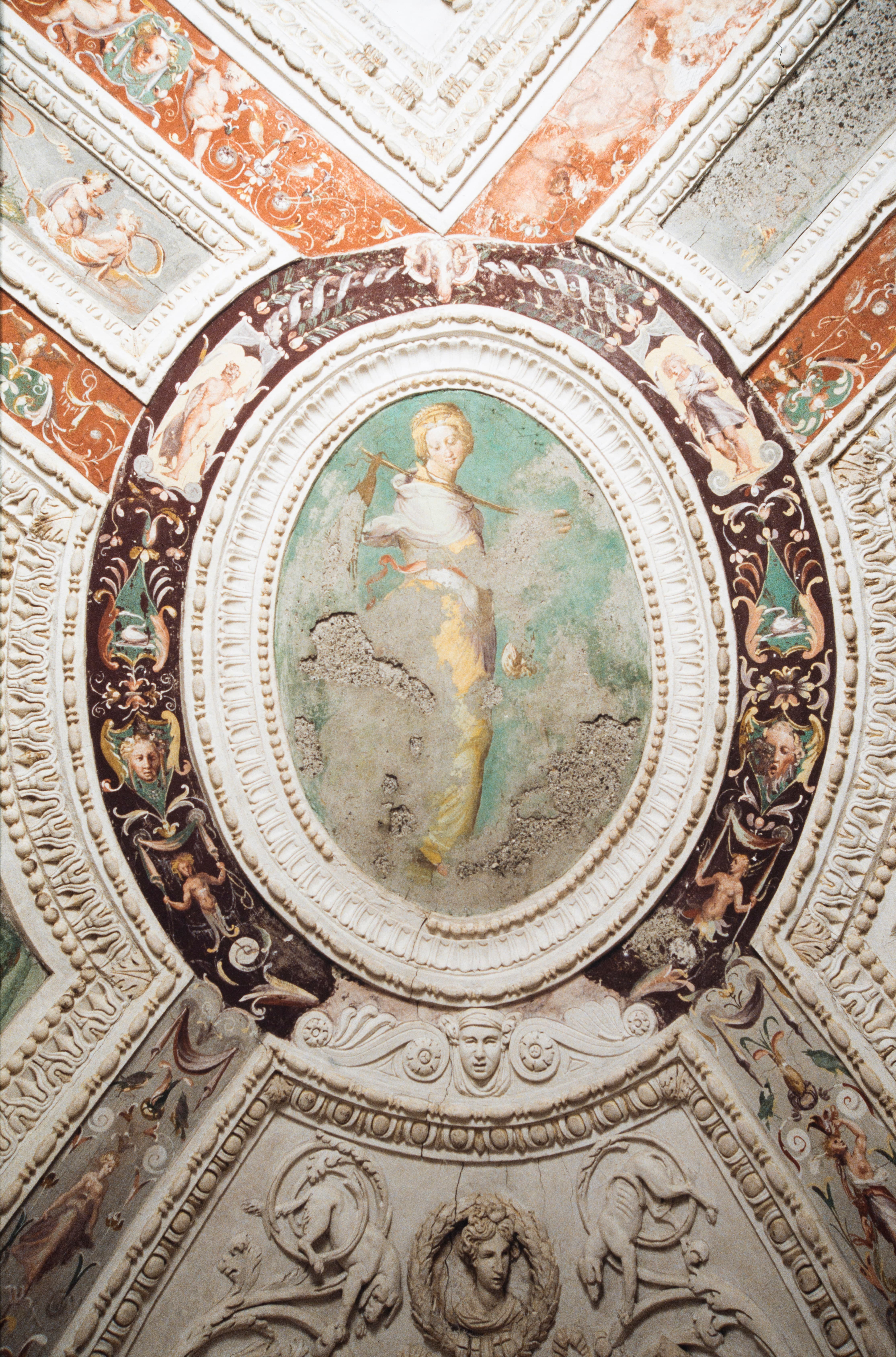Sala di Santi di Tito, volta: affreschi e stucchi, scuola di Santi di Tito (1562)