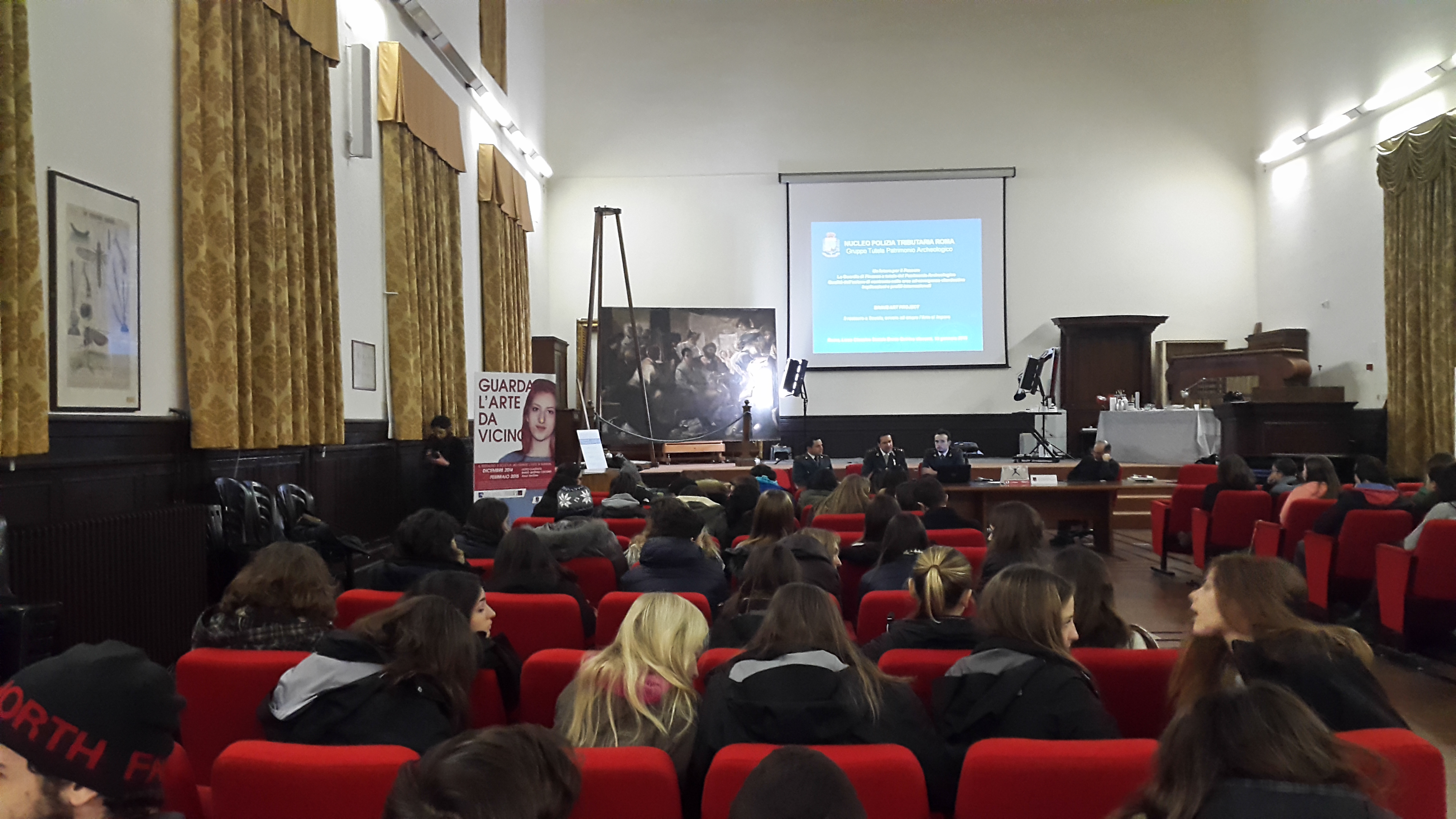 Direzione dei lavori: Dott. Giorgio Leone, Soprintendenza Speciale per il Patrimonio Storico- Artistico e Etnoantropologico e per il Polo Museale della città di Roma; restauro pubblico eseguito con finalità didattiche nell’aula Magna del Liceo Visconti.
