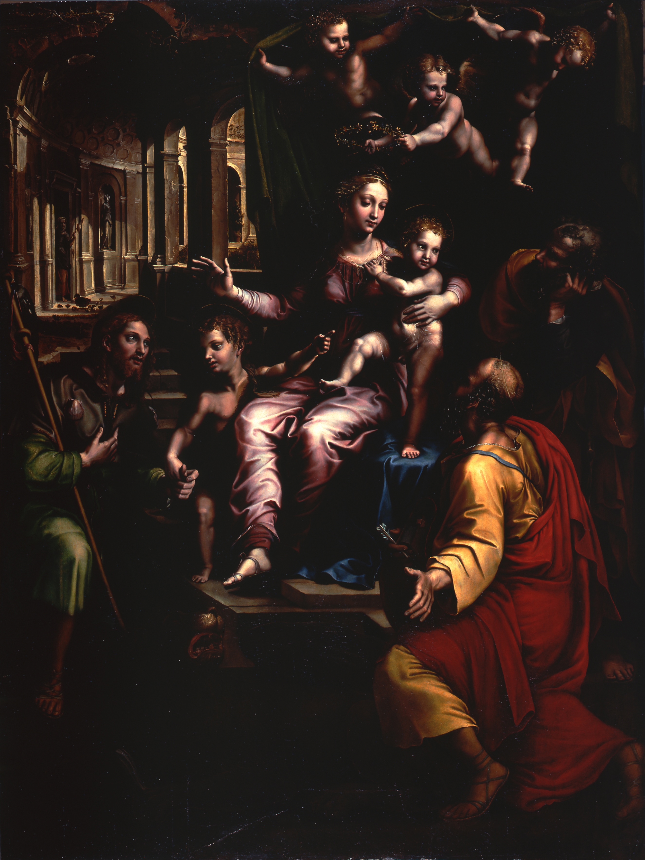 Restauro del dipinto di Giulio Romano “La Sacra Famiglia”, olio su tavola, XVI sec nella Chiesa di Santa maria dell'Anima a Roma.