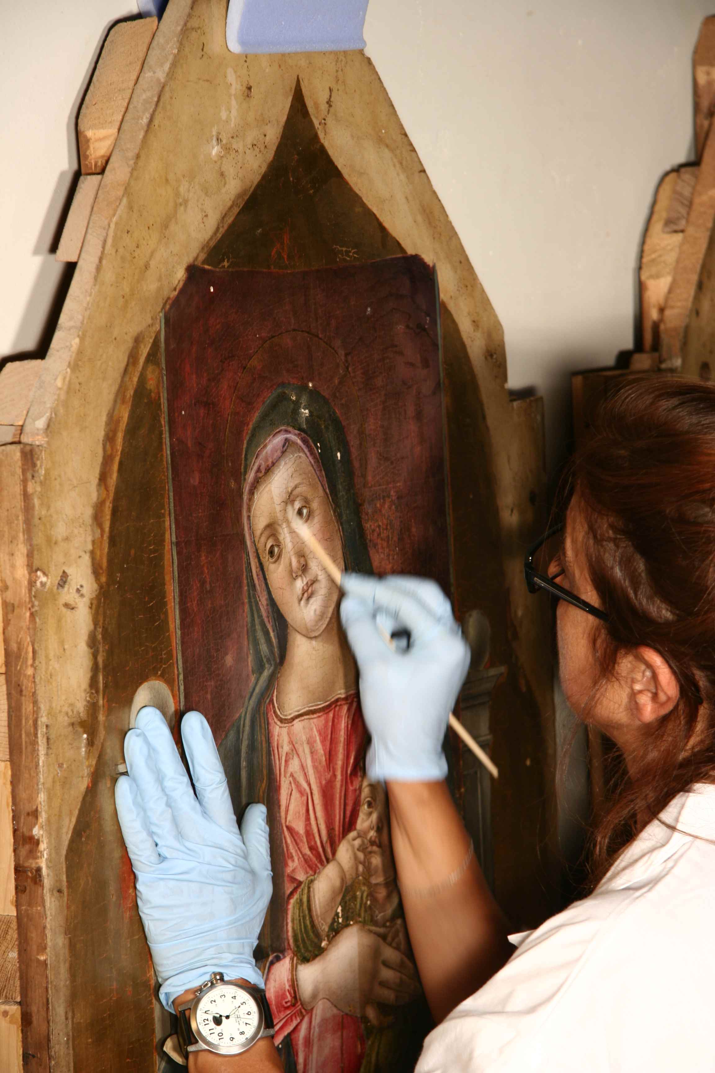 restauro del dipinto “Trittico raffigurante Madonna con Bambino, San Giorgio e Sant’Agostino” di B. Vivarini, Chiesa di San Giorgio